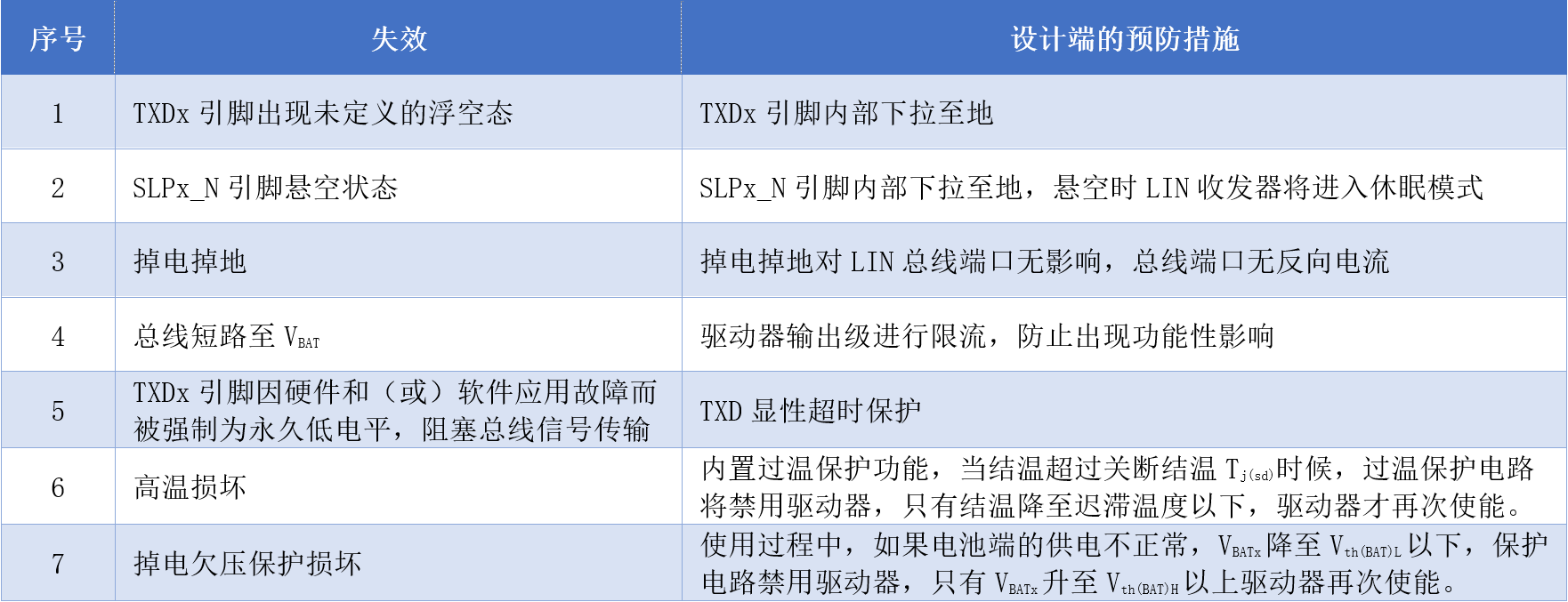 為防止SIT1022Q/SIT1024Q使用過程中出現(xiàn)的功能或者損壞的失效風(fēng)險(xiǎn),產(chǎn)品從設(shè)計(jì)端考慮進(jìn)行預(yù)防,其預(yù)防失效的安全特性一致,如表2所示。
