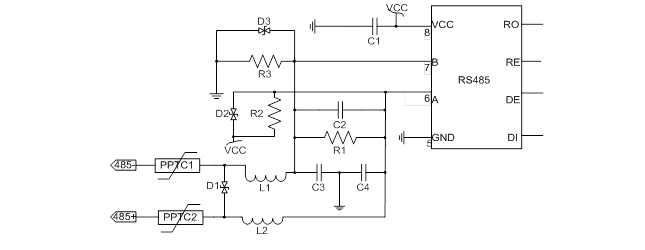 RS485通訊接口芯片廣泛應(yīng)用于各種智能儀表上,采用RS485接口的智能儀表不僅可以實(shí)現(xiàn)點(diǎn)對(duì)點(diǎn)的通信方式,還可以實(shí)現(xiàn)聯(lián)網(wǎng)功能,RS485為遠(yuǎn)程抄表提供了最可靠的抄表方式。RS485接口芯片的應(yīng)用非常廣泛,應(yīng)用環(huán)境各有不同,而智能儀表、工業(yè)控制等現(xiàn)場(chǎng)環(huán)境時(shí)常非常惡劣,RS485通訊端口需要做好靜電防護(hù)、雷擊浪涌防護(hù)、以及380V市電接入防護(hù)等,以避免智能儀表、工控主機(jī)的損壞。本文介紹幾種典型的RS485端口防護(hù)電路。